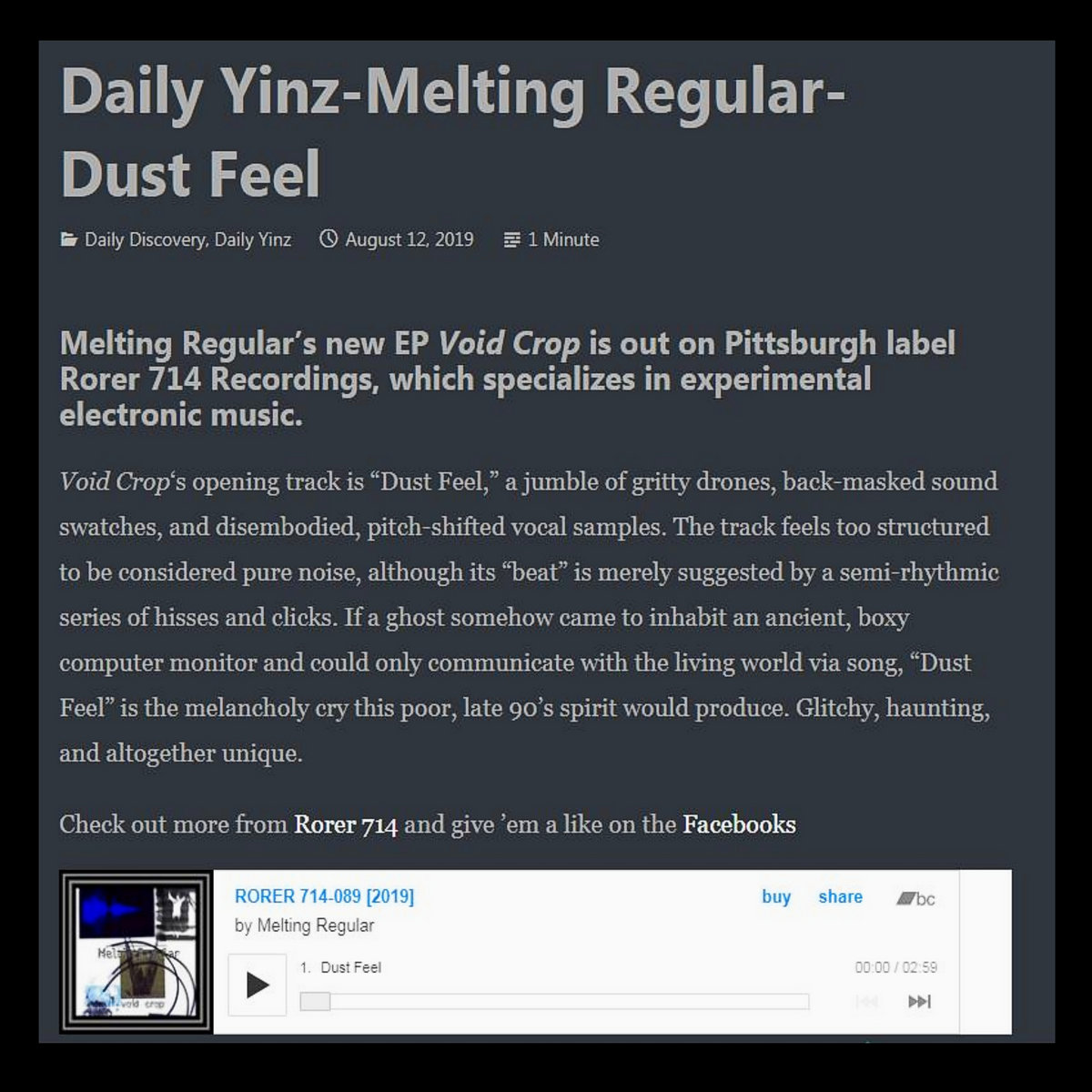 RORER 714 RECORDINGS Pittsburgh, Pennsylvania